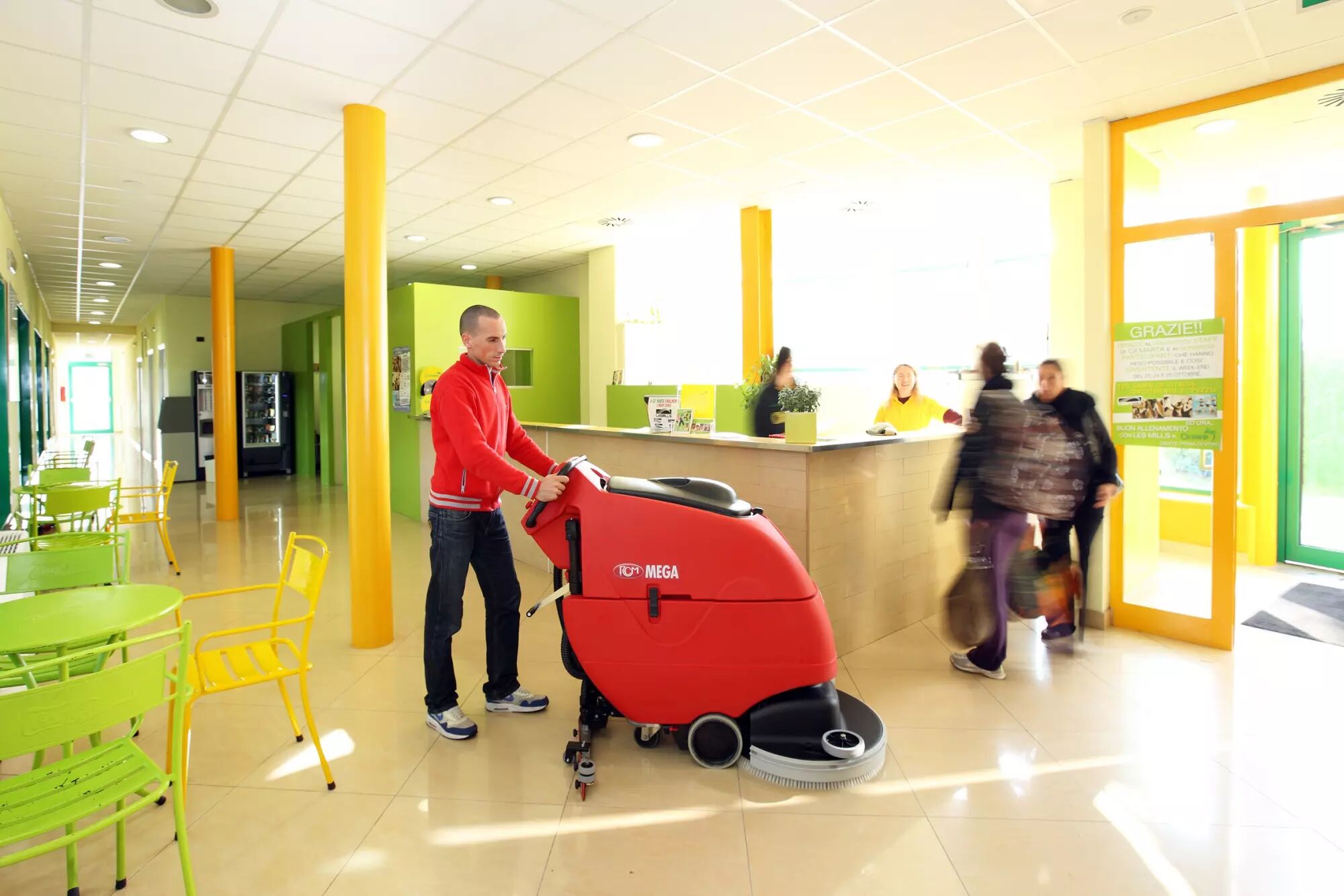 Pour les surfaces à nettoyer de moyennes et grandes dimensions, l'autolaveuse RCM Mega I 722 répondra à vos attentes. À la fois compacte, maniable et économique, elle permet un nettoyage efficace et discret grâce à son moteur d'aspiration très silencieux.