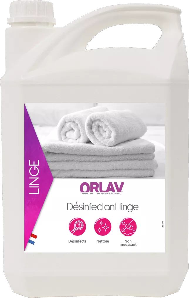Le désinfectant Linge est un produit dédié à la désinfection des vêtements et des textiles de maison, lors du rinçage en machine.